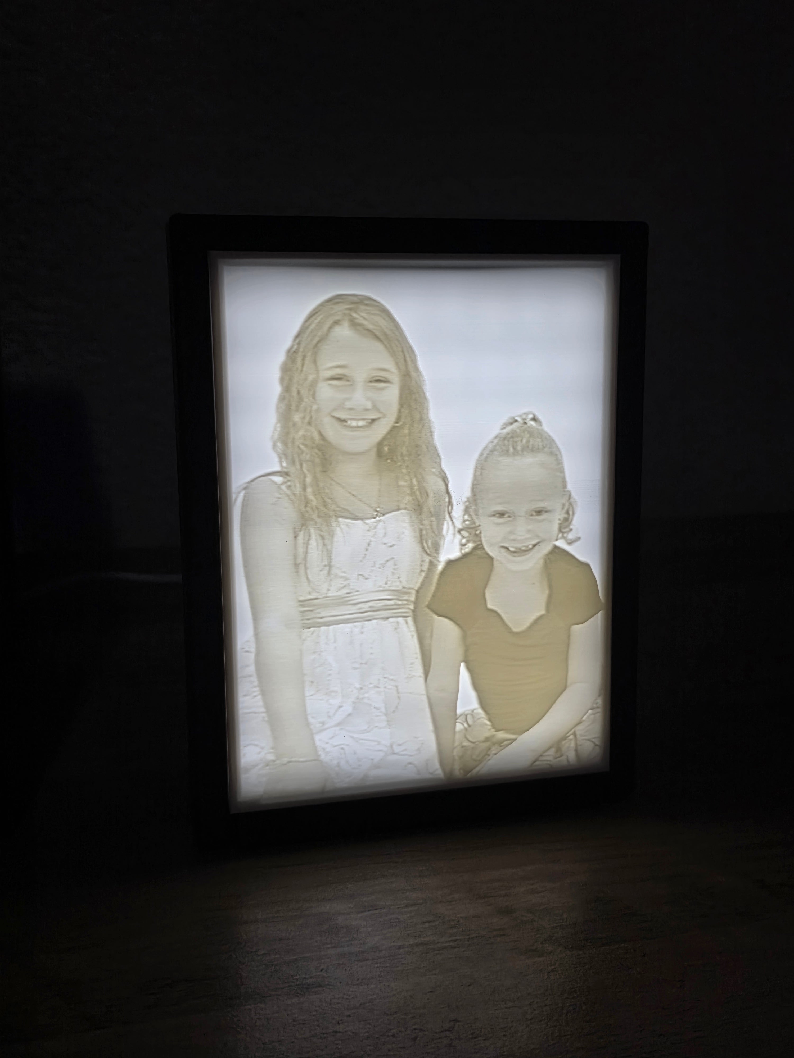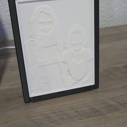 This custom‑crafted lithophane transforms your favorite photo into a stunning illuminated display. Each piece is 3D‑printed from high‑quality PLA, capturing fine details and subtle gradients that come to life when lit from behind. The image appears in soft relief when unlit, and glows with remarkable clarity and depth once illuminated.